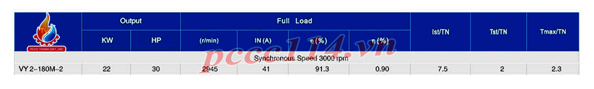 Bảng thông số kỹ thuật của động cơ Vicky VY-180M-2