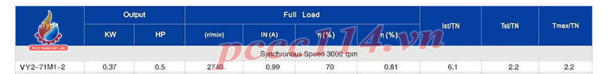 Bảng thông số kỹ thuật của động cơ Vicky VY-71M1-2